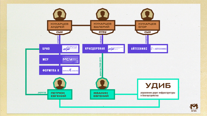 Так каждый из членов семьи Кукарцевых сидел на кресле директора в своей компании. Андрей же занимался несколькими организациями. Продуманный план или удача — что бы это ни было, оно связано с содержанием дорожных сетей в Красноярске.