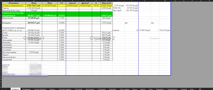 В конце этой статьи привожу скрин калькуляции. Но, самое главное - если вы начинаете затягивать стройку, то у вас растут операционные расходы - т.е. вы тратите не на стройку, а на ее содержание и себя с семьей. Поэтому максимум - это строить за 2 сезона. Первый сезон: черновой, второй чистовой.
