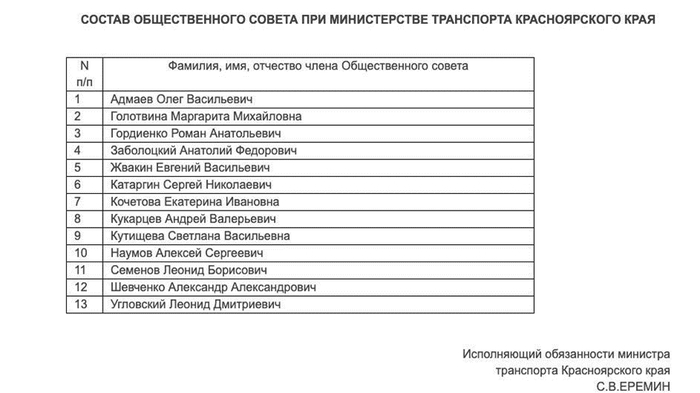 Состав общественного совета при министерстве транспорта края от 2013 года
