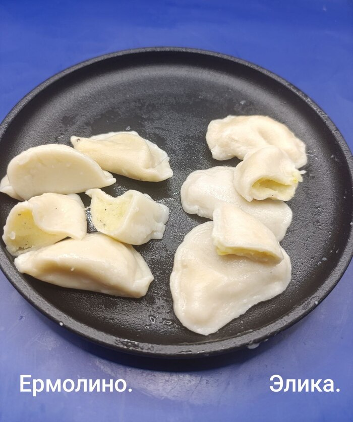 Как же я устала выставлять для кадра пельмени от Элики, они очень скользкие, не собрать их в кучу, с варениками та же песня.