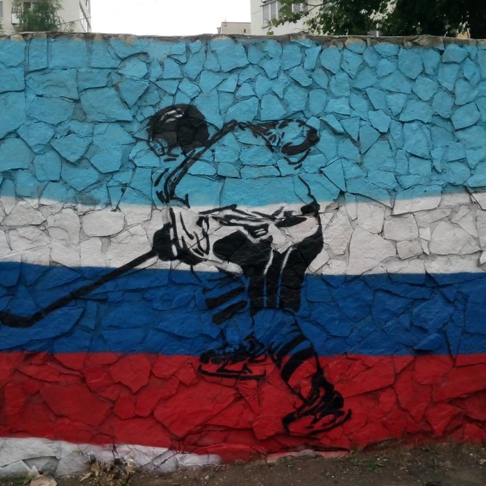 Роспись заказанная на подпорной стене,возле хоккейной коробки.