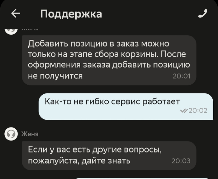 С тем, что нельзя добавить позицию в заказ я уже смирился и совершил ещё один заказ на самовывоз.