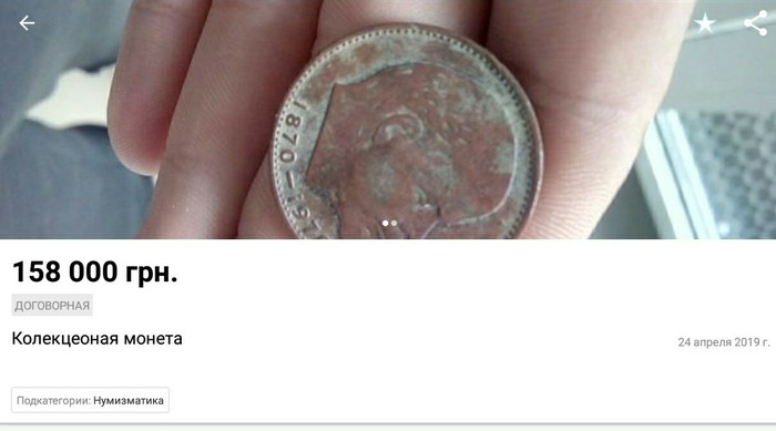 Кстати, состояние F расшифровывается как fine. Монета Ольги гораздо хуже. Она не стоит даже 30 рублей.
