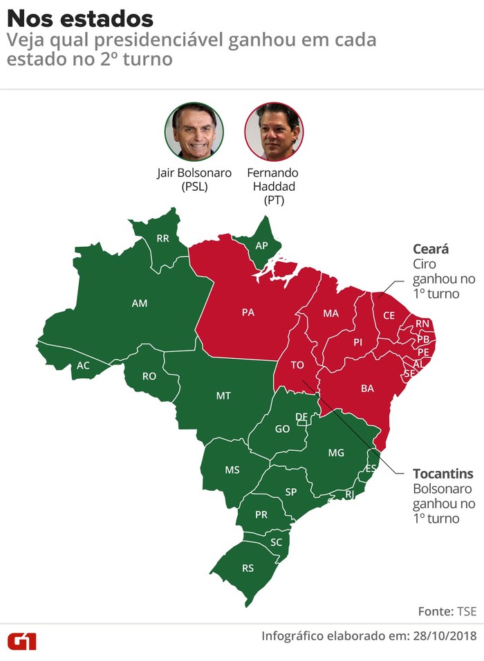 За кого же проголосовали – если верить официальным итогам, которые сам Болсонару после первого тура объявлял подтасованными, – 55% избирателей, пришедших на участки и не испортивших бюллетени, т.е. до половины нации?
