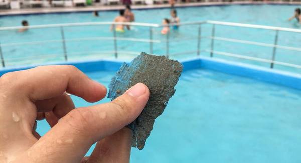 Этот водоем, в который идет слив воды с горок, – это просто залитая бетоном площадка, которую покрасили краской цвета аквамарин. Издалека или на фото подвоха сразу не заметно.