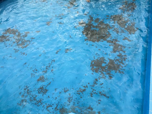 Вот место под горкой, где не бегают люди и нет сильного течения. Цемент и другая грязь выпадает в осадок.
