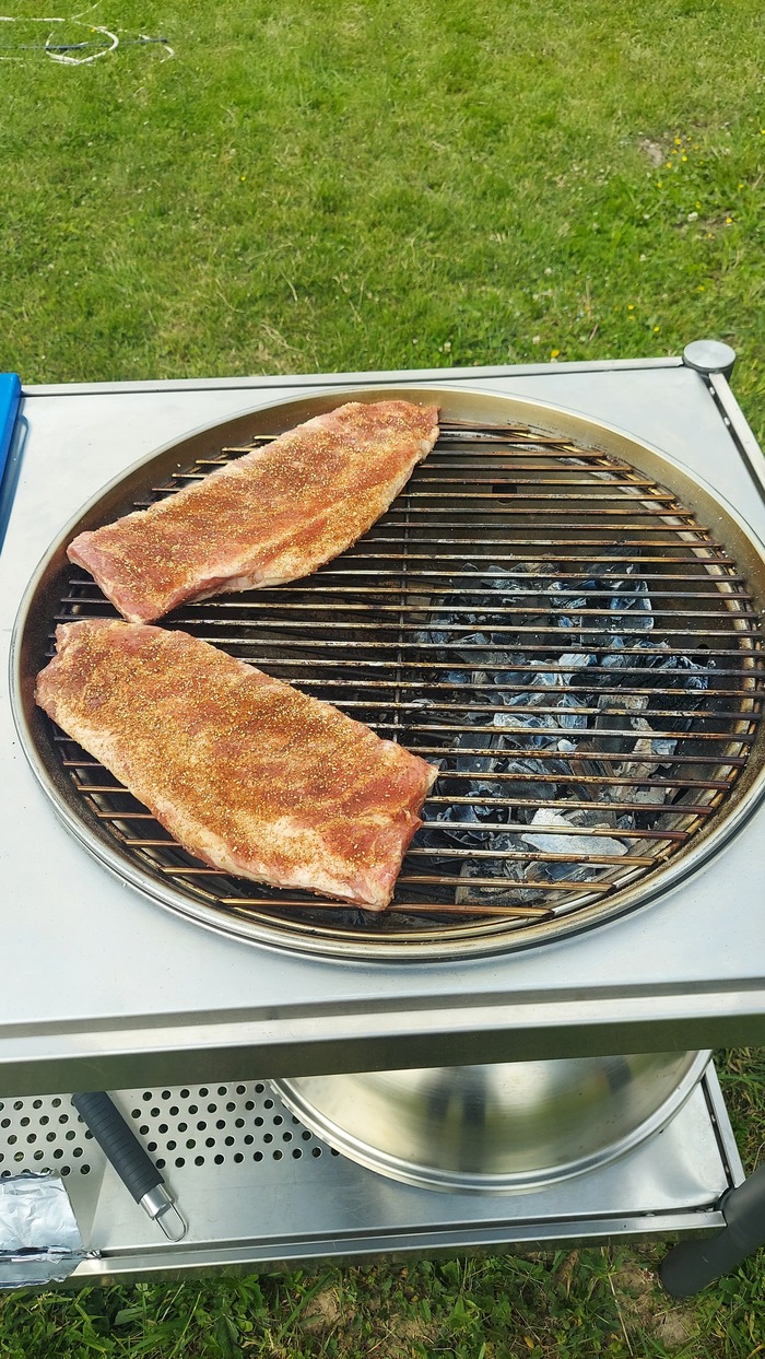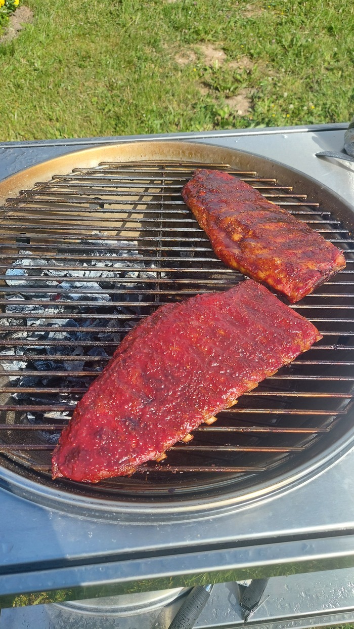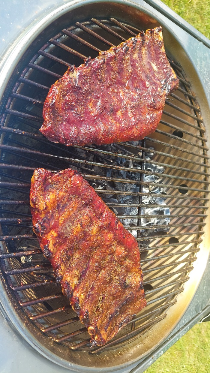 Вчера мы продолжили осваивать угольный гриль. И решили закоптить свиных рёбер.