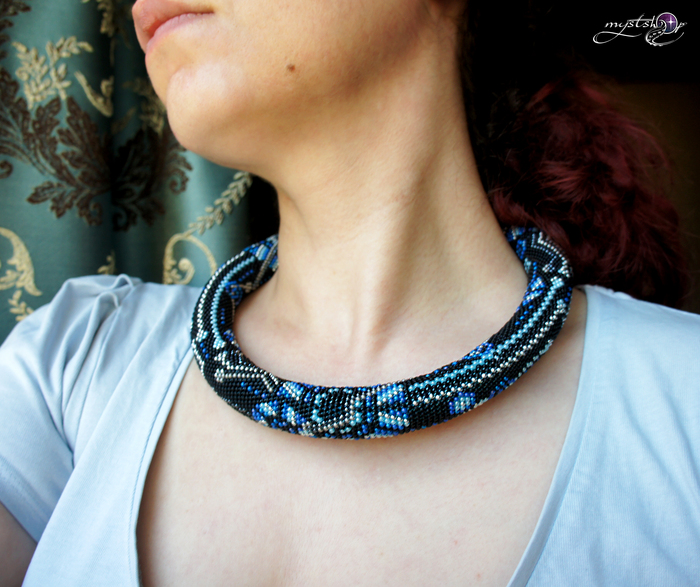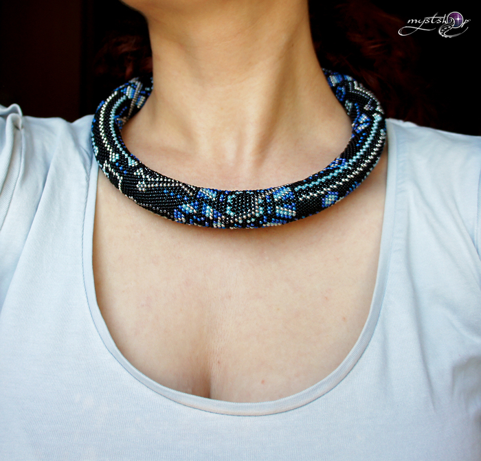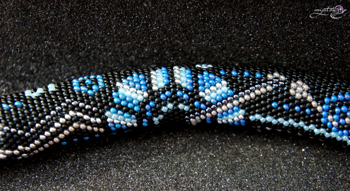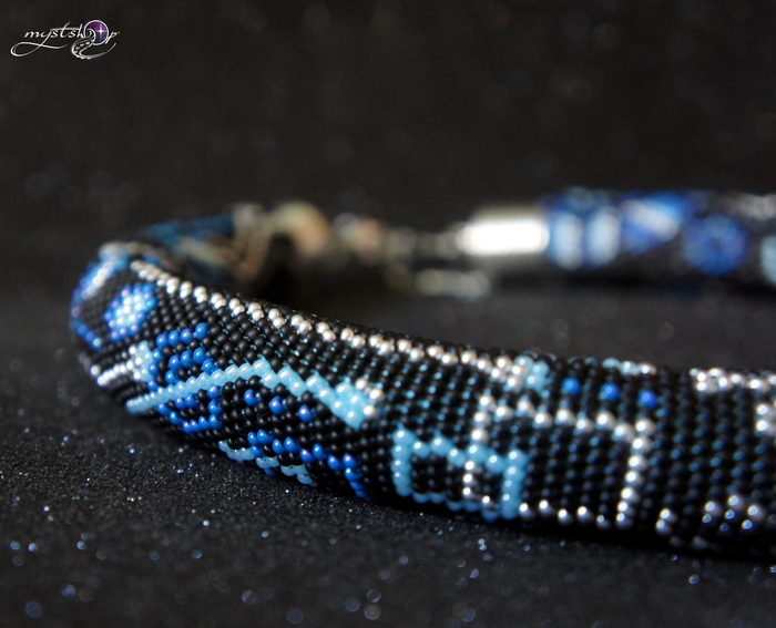 Внутри жгута каркас, за счет чего жгут держит форму и не проминается. Чешский и японский бисер. Длина жгута 55 см вместе с удлинительной цепочкой, можно регулировать. Ширина 1,6 см