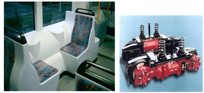 Хотя тут и ещё один плюс для трамваев–низкий уровень пола, который сейчас практически обязателен, поэтому и тележки современных трамваев смотрятся достаточно необычно с "железнодорожной" точки зрения.