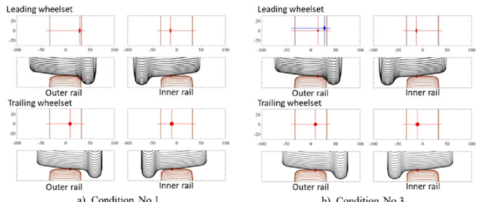 Испытания показали, что принцип пассивной радиальной установки колесных пар позволяет существенно снизить износ гребней колес тепловоза с трёхосными тележками.