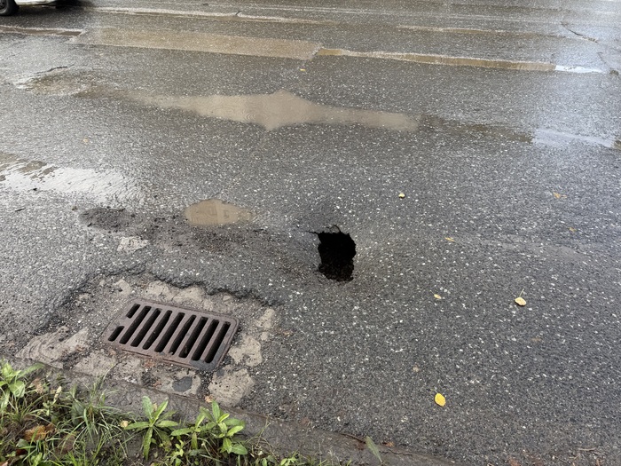 К августу одна яма привлекла внимание еще больше. Она углубилась сразу после остановки. В сентябре она стала зиять. Тоже сообщил об этом, даже позвонил. На что Бочоришвили сказал что он не может ничего сделать, пишите в администрацию губера.