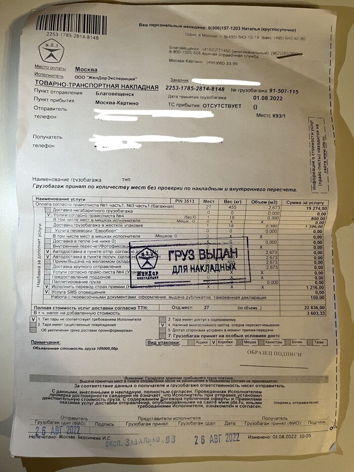 Распространите по соцсетям, чтобы как можно больше людей знали, что Желдорэкспедиция – ужасная компания по перевозке грузов. Чтобы как можно больше людей знали, что ваши кровно заработанные деньги, ваши нервы, ваша память (многие вещи были подарены дорогими мне людьми на значимые события) для данной компании ничего не значат.