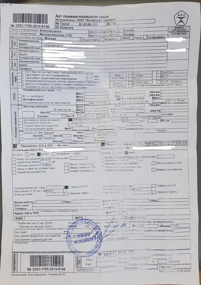 Сейчас я поведаю рассказ о том почему вам никогда НИКОГДА!!! Не стоит связываться с компанией перевозчиком «Желдорэкспедиция». Кратко: ваш груз, ваши личные вещи не доедут в целости и сохранности. У вас его просто украдут, и вы ничего не докажете!