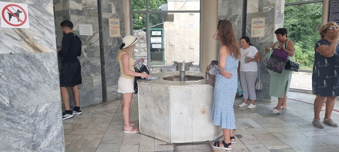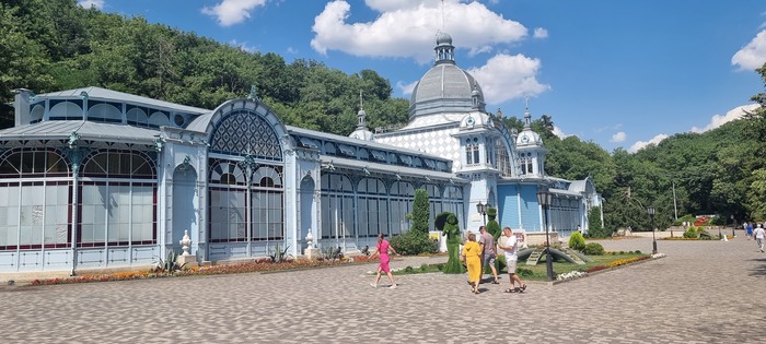 Так как Змейку решили не брать, поехали в Железноводск. Город более интересный. Чуть больше достопримечательностей. Многие люди пьют из минеральных источников. Мне не понравилось: эта вода 56 градусов, горячая, жестоко пахнет сероводородом и на вкус - железо. Но, говорят, она лечит. С 18-19 века туда ездили люди лечиться на этих водах.