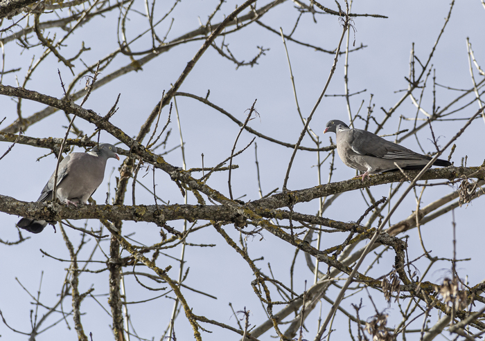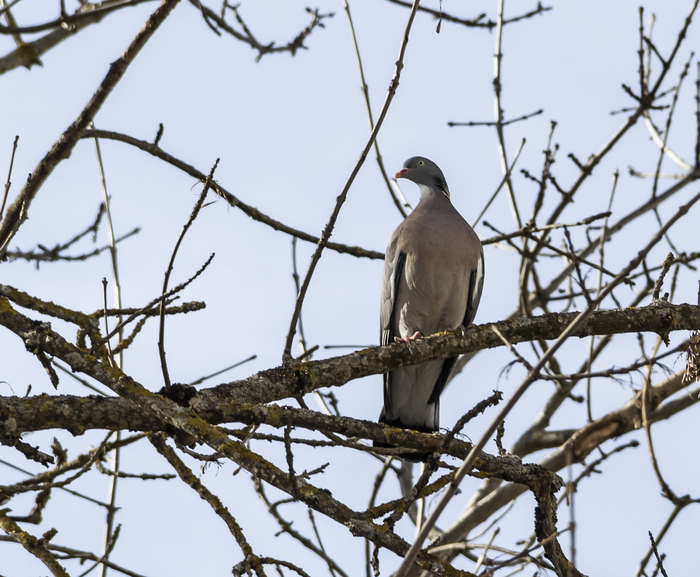 Встретился такой немного странный голубь. Вернее два. Крупнее обычных, необычной расцветки и летают парой, а не толпой, как городские. В Гугле опознался как Вяхирь. Вроде, похож.