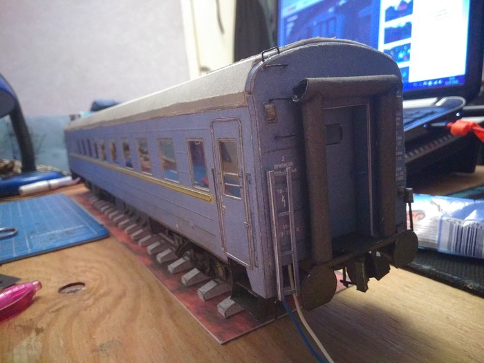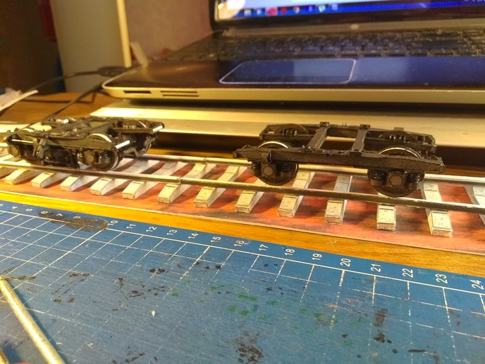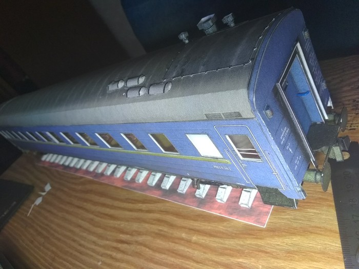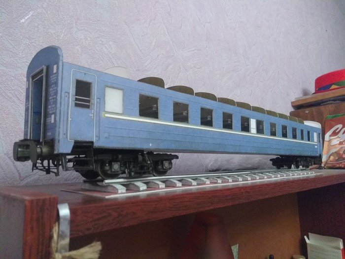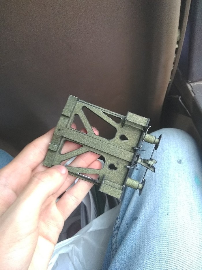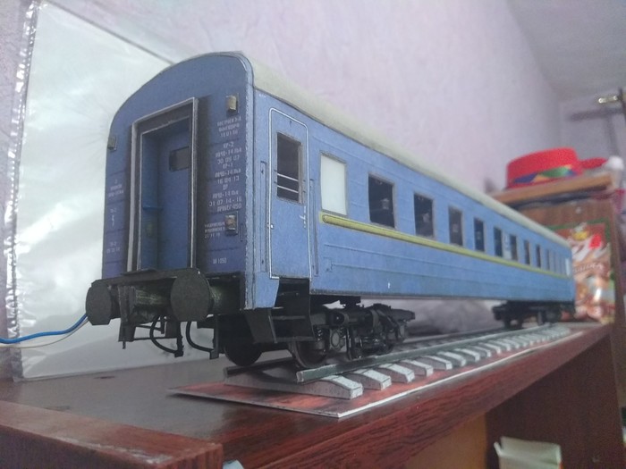 Колёсные тележки, так же выполнены из бумаги, и они свободно катаются по рельсам