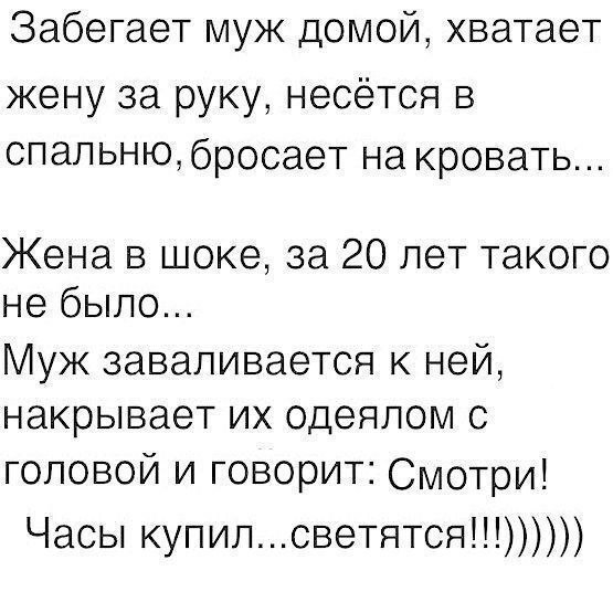 Час Х. Просыпается муж, чувствует что-то непонятное под собой, понимает, что у него случился конфуз. Как бы мимокрокодилом заходит жена, видит своего прих*евшего ненаглядного. Мужик смотрит на неё и спрашивает, что вчера было, рассказывает, что такого утром никогда не случалось. Жена ему и говорит: «Что-что! Опять пьяный припёрся. А я тебе говорила, доведёт тебя твой алкоголь!»