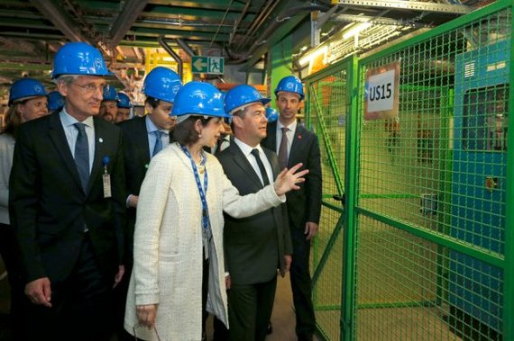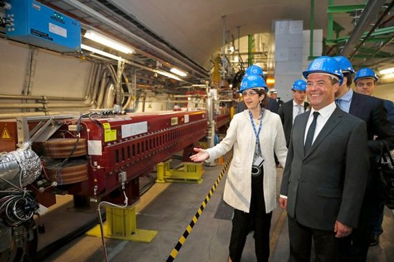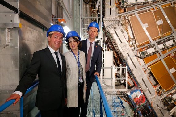 Дмитрий Медведев на лифте спустился в шахту крупнейшего ускорителя частиц в мире. Он осмотрел научное оборудование и пообщался с российскими учеными, работающими в ЦЕРН