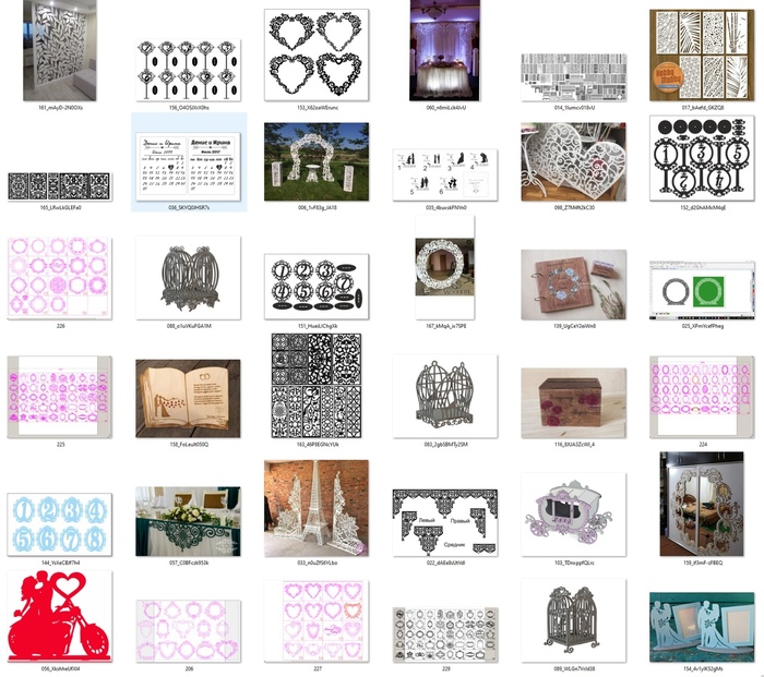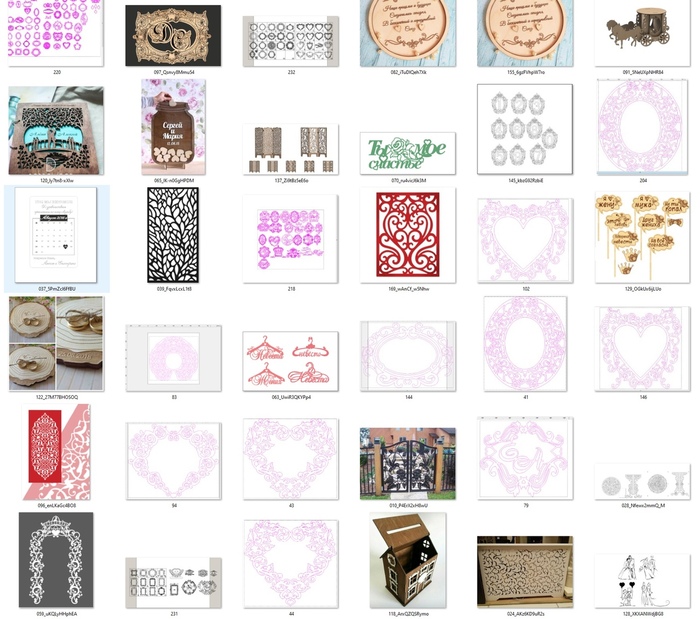 Сборник макетов, рисунков,шаблонов,чертежей свадебной тематики в векторном формате для резки и гравировки