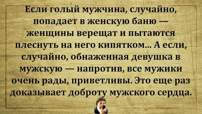 "Ребёнком я посещал женскую баню. Не в целях саморазвития, а потому что жил в неблагополучном районе. Из удобств в нашей семье был чайник. Из него мы мылись, пили и отапливались им же. Но раз в неделю хотелось большего. Так я впервые увидел голых работниц механического завода. Художник Рубенс, видимо, мылся в той же бане и страдал теми же визуальными кошмарами. Что бы он потом ни рисовал, получались токарихи и фрезеровщицы, состоящие из бугров, оврагов, складочек и обвислостей. На изготовление каждой уходил центнер дрожжевого теста и немного волос. Прыгнув в такую, можно было утонуть.