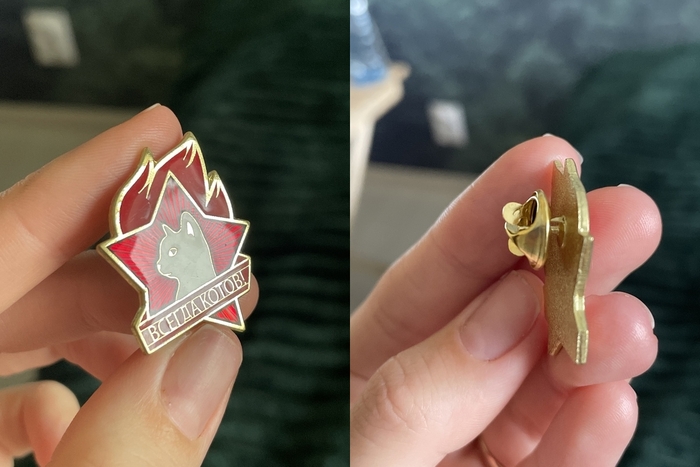 Значок-брошь металлическая с эмалью 'Всегда котов.' Стоит 43 руб. Ссылка на неё