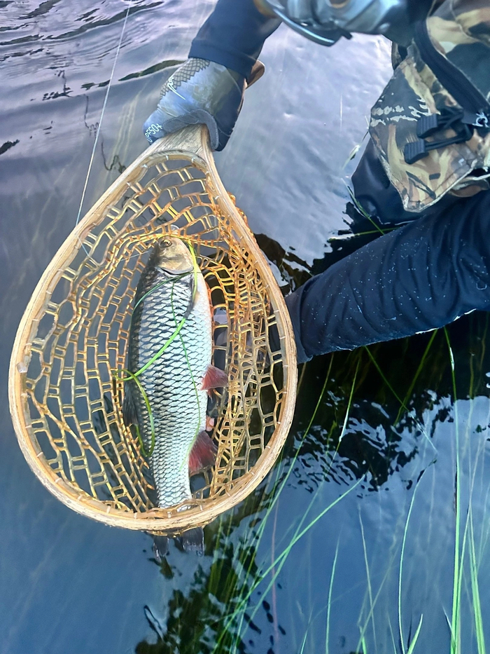И тут минут через 40 начался вечерний выход. На поверхности активности рыбы было не видно. Но каждый 3-4 заброс приносил долгожданную поклёвку. К сожалению, не всю рыбу удавалось довести до берега. Да это и к лучшему, впереди у нее нерест.