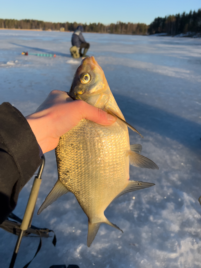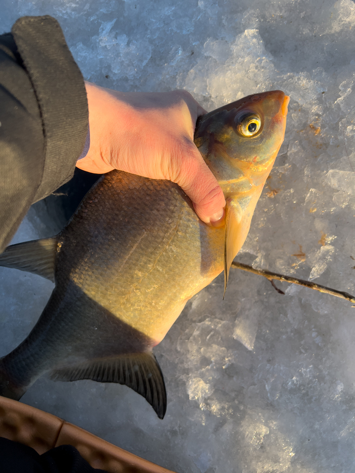 План был с утра начать ловить леща и если будет поклевывать мелочь в течении дня расставить жерлицы. Сразу же с утра на одной из лунок начала активно брать плотва. Размер конечно был не живцовый, но решили ставить и крупную, пусть жерлицы стоят, вдруг и крупная щука залетит на котлеты.