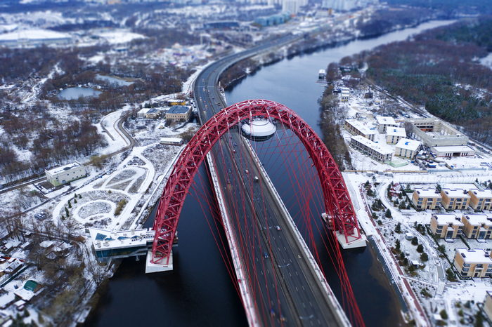 Первый вантовый автодорожный мост в Москве. Самый высокий мост такого типа в Европе на момент строительства. Получил название по находящейся рядом Живописной улице. Открыт 27 декабря 2007 года.
