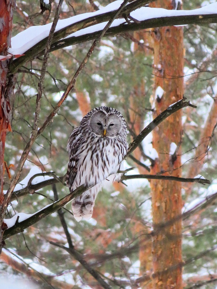 Длиннохвостые синицы кормят птенцов у гнезда. Москва, Воронцовский парк.