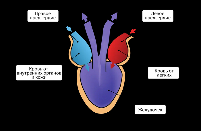 Эта деталь состоит из желудочка и двух предсердий по бокам. В учебниках биологии написано, что богатая (артериальная) и бедная (венозная) кислородом кровь попадают в желудочек, перемешиваются, а затем распределяются по организму. Это грубое упрощение, дающее неверное представление о продукте.