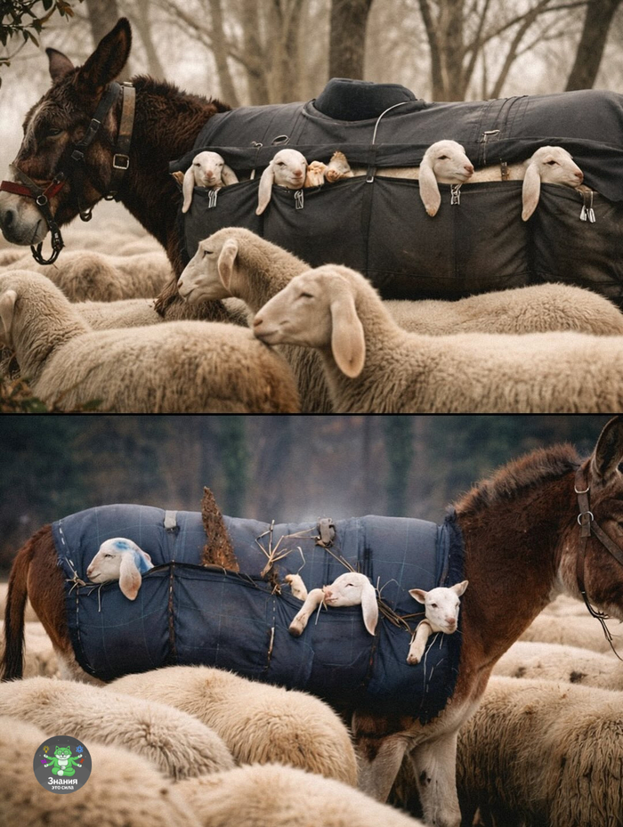 🐏Так фермеры Италии перегоняют скот с высокогорных пастбищ на более низкие. Им помогают ослы-няньки.