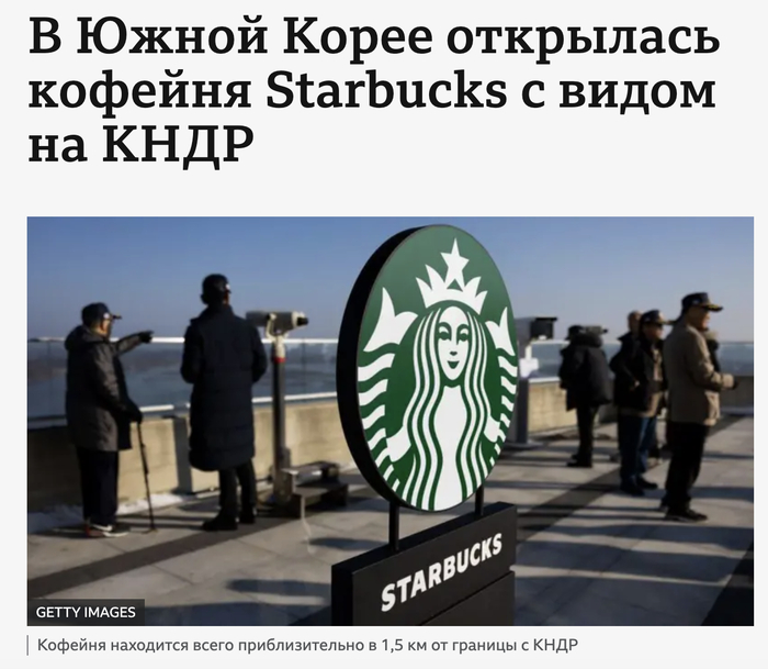 В «Старбаксе» полно людей, но если чуть подождать, то найдётся место у окошка. Интернеты не врут, действительно можно выпить ужасный кофе или чай с видом на КНДР!