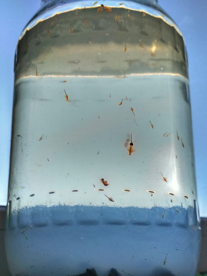 Эти жаброногие не только не сдохли, а ещё и расплодились в ужасном количестве (и продолжают плодиться). Жрут остатки грязи со дна банки, и размножаются (на фото видно что многие с икрой)