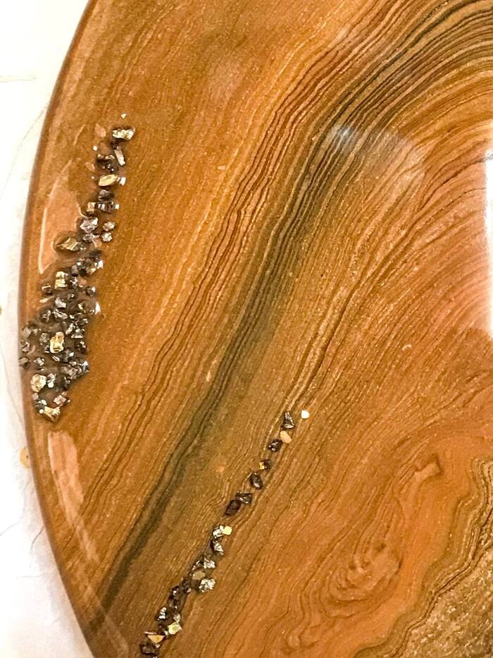 "Золотое пробуждение: Магия лесного сердца" - это великолепное картина-панно, созданное из эпоксидной смолы в коричневых тонах, украшенное золотыми элементами и камушками.