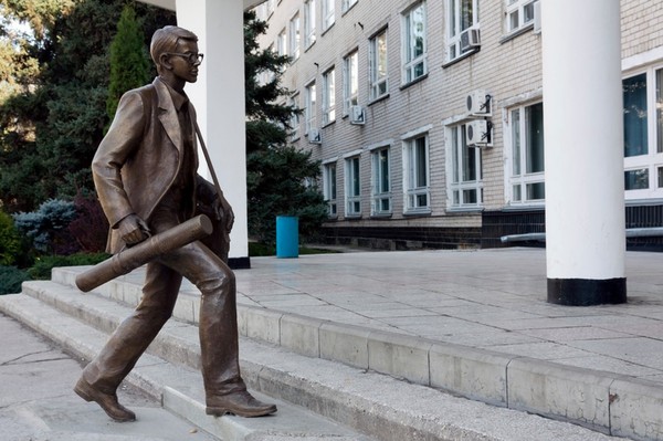 Скульптура "Студент, спешащий на занятия". Как по мне, не сильно он торопится)