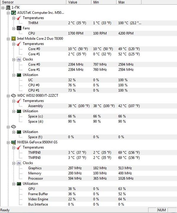 Эксперимент длился 10 минут, после чего ноутбук самопроизвольно выключился. Итоги эксперимента на скриншоте
