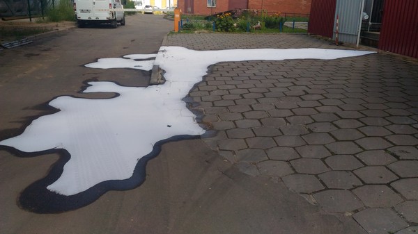 А это через несколько часов, после того как слили весь жидкий азот из резервуара. На месте где была лужа, земля сильно промерзла и на ней образовался иней, который был еще до следующего дня.
