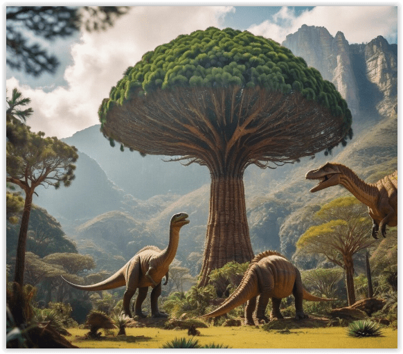 Во времена динозавров были широко распространены деревья гинкго. Появились они около 250 млн лет. Сейчас остался только один вид — гинкго двулопастный. Живет дерево очень долго - самому долгожителю из Китая уже более 3 тыс лет. Это уникальное реликтовое и эндемичное растение, занесенное в Красную книгу мира. Это единственный сохранившийся вид из многочисленных Гинкговых, существовавших 200 млн лет назад. В юрский период мезозойской эры деревья произрастали в Европе, Азии, Северной Америке и даже в Гренландии. Чарльз Дарвин называл их «живой окаменелостью», так как они существовали вместе с хвощами и папоротниками в эпоху царствования динозавров.