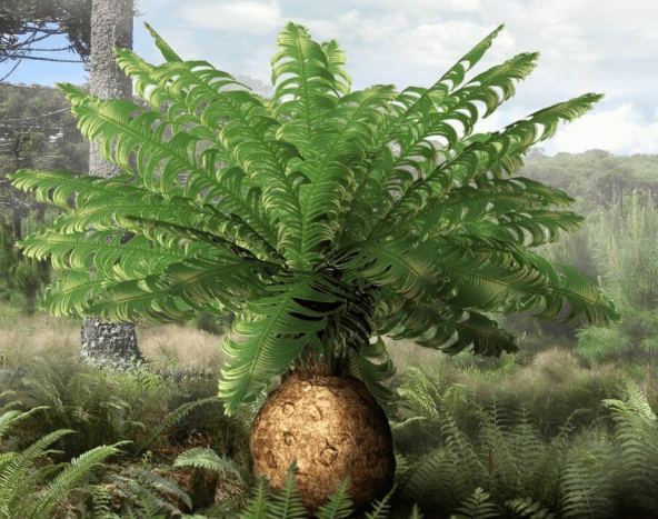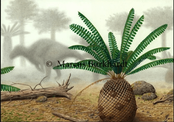 Еще один популярный вид растений. Очень похожи на пальмы, только принадлежит к голосеменным. До наших дней дожили их потомки - саговники. У них нет плодов в традиционном понимании, но их семена внешне напоминали фрукты или кокосы.