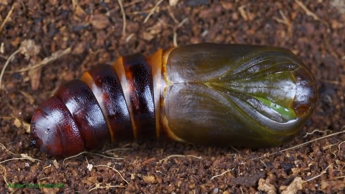 Гусеницы Атласа тоже огромны – до 10 см в длину. Внешний вид их довольно необычен: светло-зеленого цвета, с крупными голубоватыми отростками по всему телу, которые покрыты белым восковым налётом, напоминающим пудру.