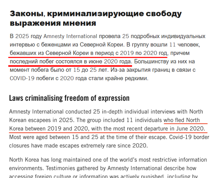 В оригинале документа сказано, что все материалы основаны на интервью с людьми, покинувшими Северную Корею до июня 2020 года. Проблема в том, что мировая премьера сериала «Игра в кальмара» состоялась в сентябре 2021 года — спустя полтора года после отъезда свидетелей.