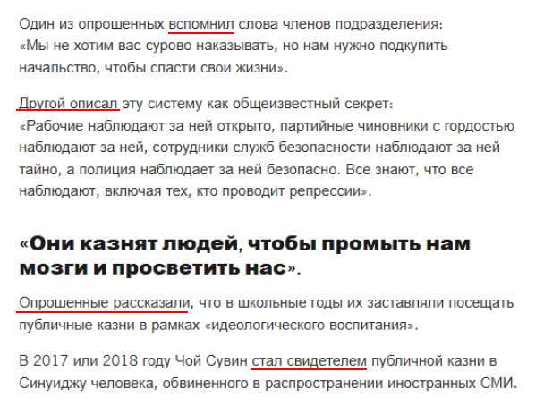 «Новый закон, действительно, предусматривает высшую меру наказания за распространение враждебной пропаганды. Просто просмотр под это не попадает и на высшую меру не тянет даже теоретически. На практике, примерно до 2015 года власти смотрели на распространение южнокорейских видео-аудиоматериалов абсолютно сквозь пальцы. Примерно с 2015 года за распространение и копирование такого контента действительно можно попасть в тюрьму. Однако, мне неизвестен ни один достоверный случай, когда за это реально расстреливали», — пояснил Андрей Ланьков.