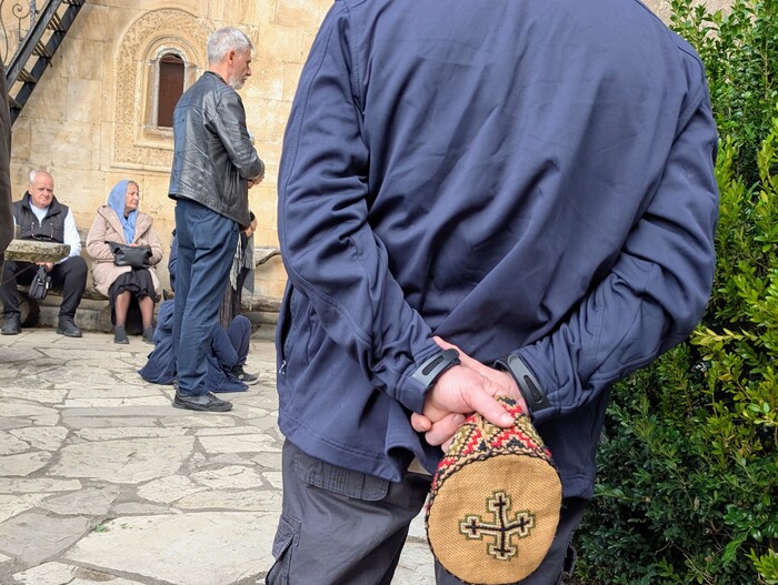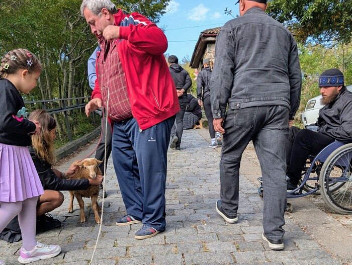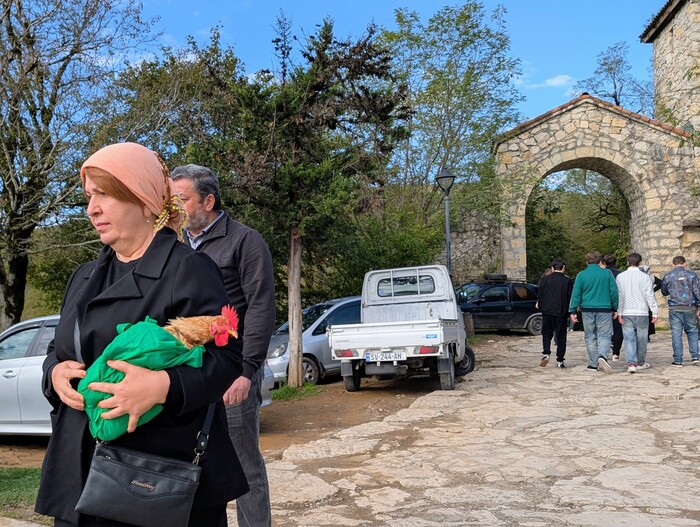 Церковь старая и колоритная. Народу много: местные несут в храм ягнят и куриц.