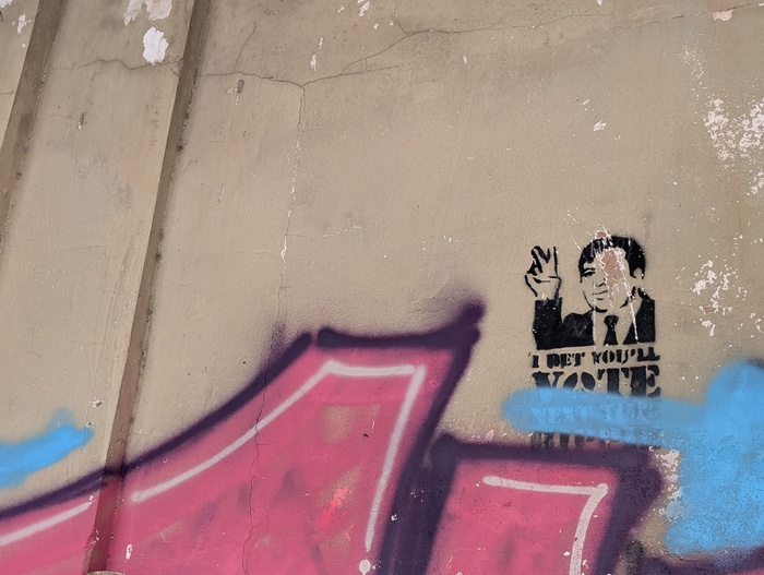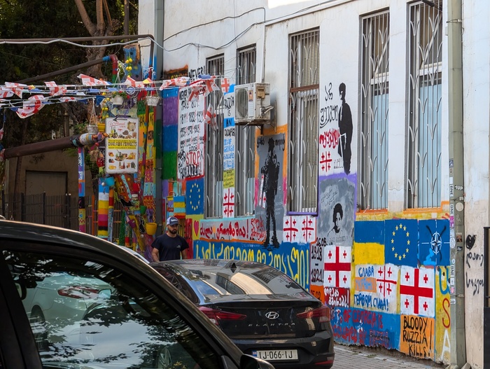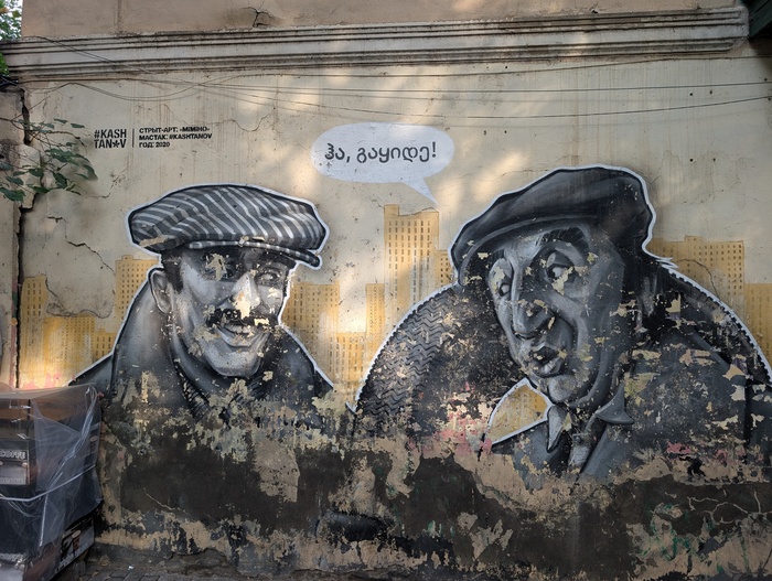 Встречаются граффити с Саакашвили. по словам местных, ему можно поставить плюсик за эффективную реформу полиции. Он сейчас сидит, вроде как.