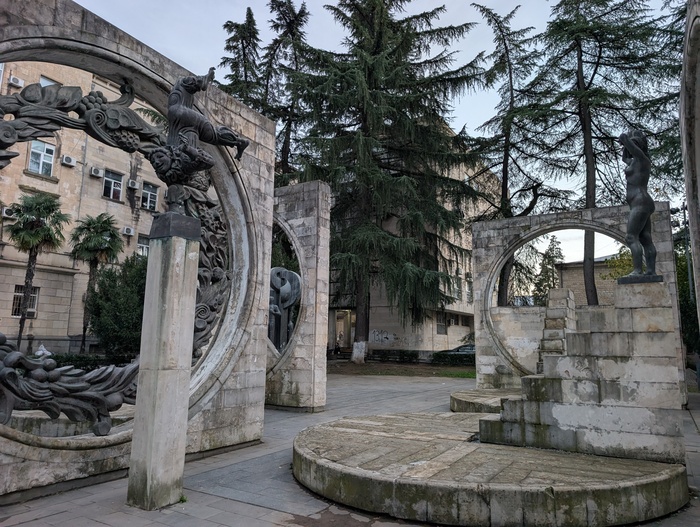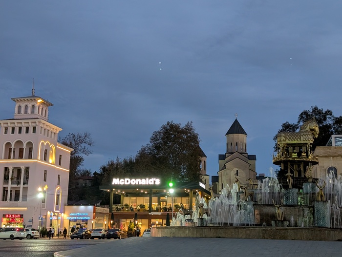 Вечером приехали в Кутаиси и немного прогулялись по городу. Кроме советских памятников в стиле брутализма ничего особо интересного не увидели. А на главной площади опять Макдональдс.