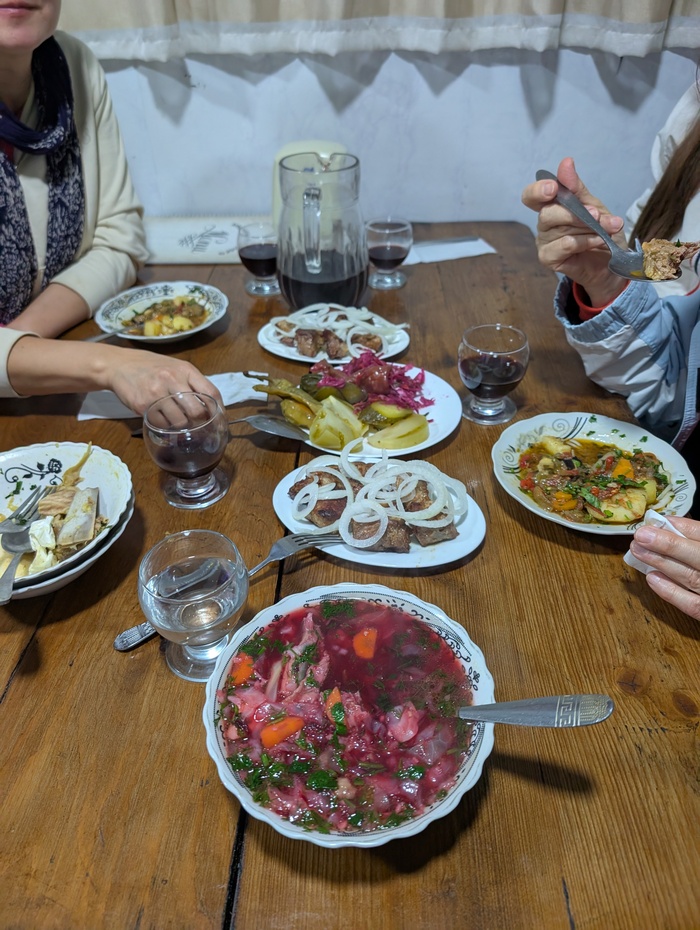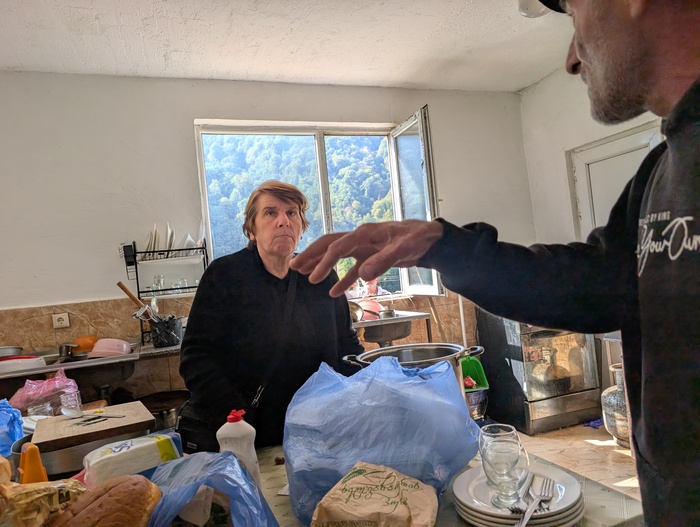 Спали в хрущевке у грузинской бабушки Паати. К нашему приходу она напекла лепешек, и вскипятила чайник (чай Азербайджанский).