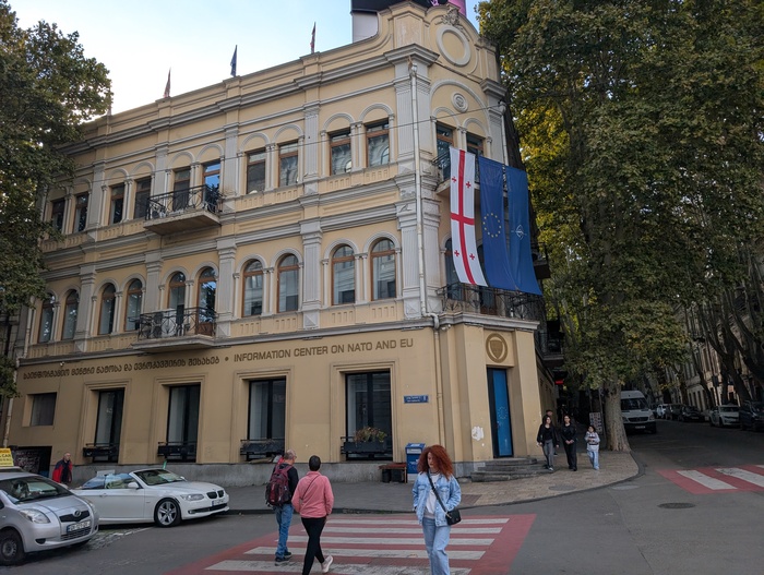 Немного забавно, что на многих административных зданиях висят флаги Евросоюза, хотя Грузия в этой организации не состоит.