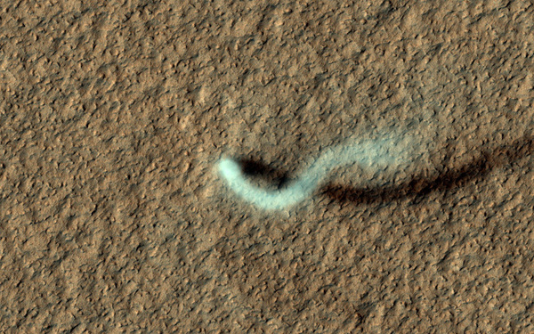 Кроме масштабных пылевых бурь, покрывающих всю планету или существенные ее части, на Марсе можно наблюдать деятельность малых вихрей, которые американские ученые называют Dust Devil. Чаще всего они выглядят как пыльный хобот, поднимающийся на высоту от нескольких метров до нескольких сот метров.