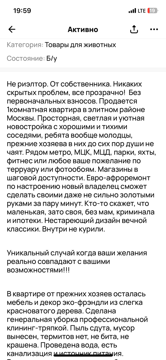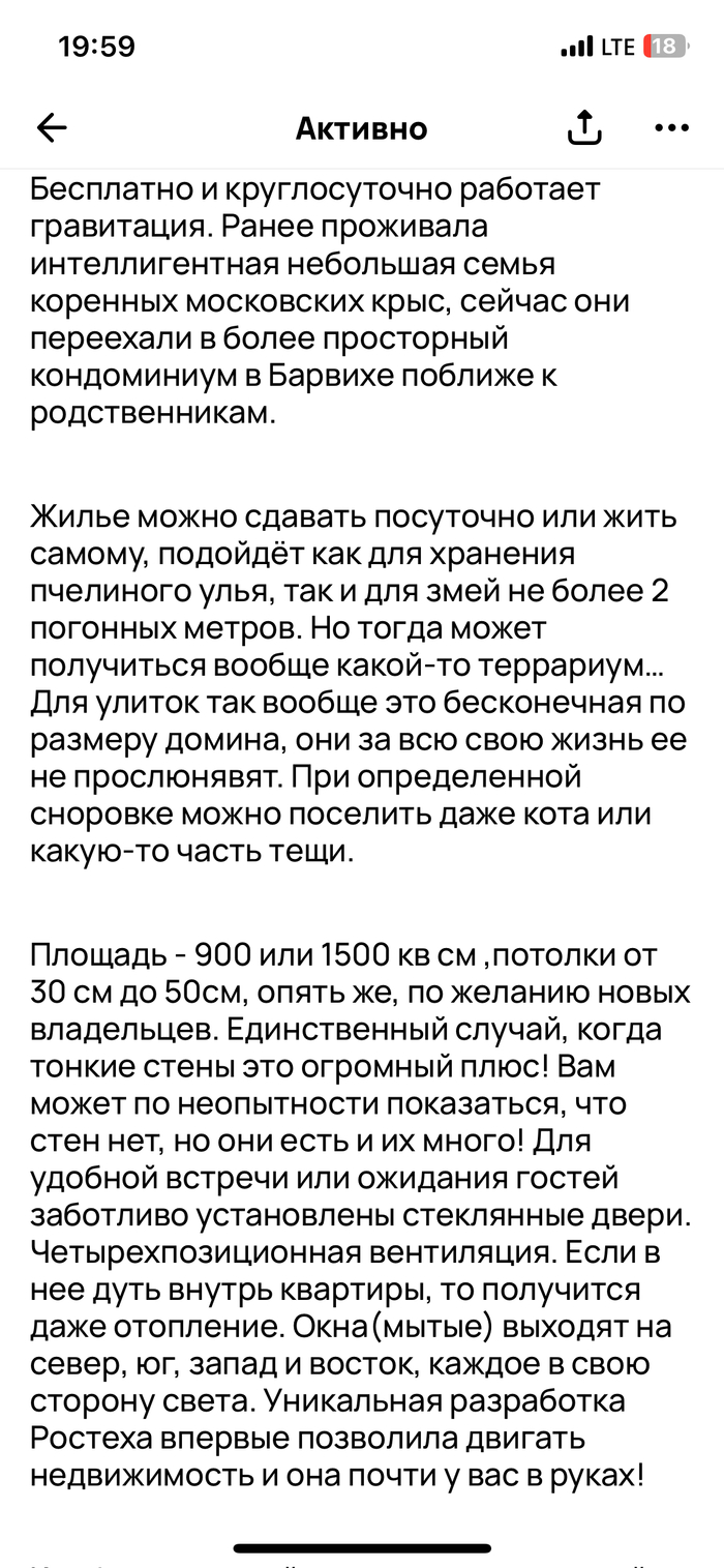 На известной доске уникальное объявление. Кажется, я нашел себе доступное жилье в Москве!