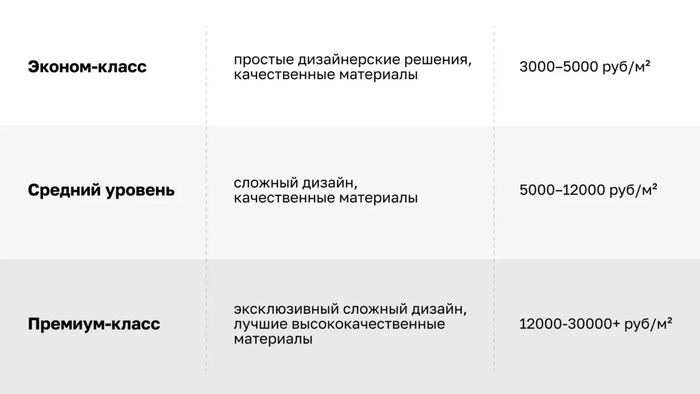 Стоимость дизайн‑проекта варьируется в зависимости от набора услуг. От типовых решений до комплексных проектов с авторским надзором, проверкой соответствия материалов спецификации и оперативным согласование изменений на объекте. Типовой проект часто дешевле и подходит для экономии. Тогда как проект с авторским надзором сокращает риск дополнительных расходов и переделок, повышая гарантию на ремонт и соблюдение сроков ремонта в новостройке. При сравнении предложений обращайте внимание на полный перечень работ в смете, цену за м² ремонт и наличие ведомостей отделки в пакете услуг.